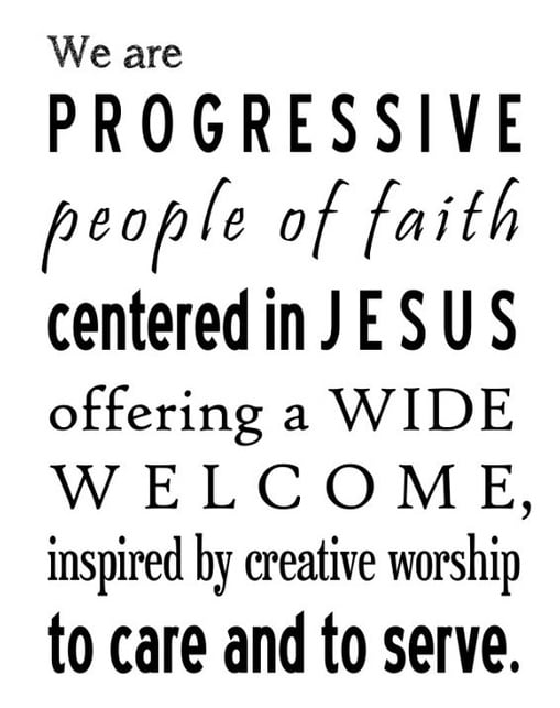 We're progressive. That means we're moving forward. We celebrate and learn from what's been, but we also believe that we need to focus on today, even as we prepare for the future. We journey together. We work together. We struggle together. And when something gets in the way, we do our best to figure out a way around, under, or over it! Just as God calls us to do in life.